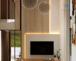 A stylish Home theatre for the entire family to view their favorites sitting on a cozy couch and relishing the togetherness.